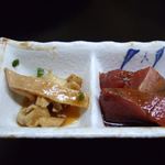 長浜鮮魚市場側という立地にあり、新鮮な魚介を仕入れられるため、魚介ネタの質にも自信あり。衣はサックリと軽く、エビの身はプリプリ! イトヨリの身はふわふわで、レンコンや甘長ししとうの食感もたまりません。