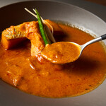 続いて出てきたのがシーフードカレー。内容は日替わりだそうですが、この日は鮭、鯖、タコが入ったトマトベースのカレーでした。豪華ですね。