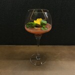 ほかにゴーヤのポリヤルなどものっていて、ミールスとしては非常にモダンなスタイルであり、モダンインディアン的コースへの期待が膨らむ内容でした。ドリンクもついているのですが、ミックスジュースを選べるということで珍しいなと思いそれにしてみると、フルーツと野菜のミックスジュースで、仕上げに使われているライムが非常に爽やか。隠し味にヒマラヤ岩塩を使っているというのも面白いです。