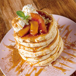 ベーシックな「ミルフィーユパンケーキ」(4枚759円、8枚1,199円)のほか、フルーツや生クリームをトッピングしたデコレーションパンケーキも用意。フレーバーは「アップルシナモンキャラメル」「チョコバナナ」(各4枚1,199円、8枚1,529円)、「ミックスベリー」「マンゴー」(各2枚1,089円、4枚1,309円)の4種類から選べる。