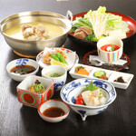 同店では、濃厚な白濁スープを言い表すために「水炊き(みずたき)」ではなく「水だき」と呼んでいます。鶏ガラを10時間以上炊き、余分な脂やアクを丁寧に取った鶏スープは、濃厚な旨みがありながらも飲み口はあっさり。じんわりと広がる奥深い味わいが自慢です。名物の水だきをランチで味わうなら、1人前の水だきに2種の小鉢などが付く「水だき小鉢定食」2,100円をぜひ!