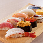 魚や貝の持つポテンシャルを職人技で最高レベルに仕上げた寿司ダネと酢飯、このたった2つの食材が織りなすハーモニーで食べた人を笑顔にすることができる「寿司」。握り寿司が誕生した江戸時代はお腹が空いたら屋台で気軽にサッと食べられる現代のファストフードだったと言われています。「東京立ち寿司」はそんな江戸前寿司の情景を彷彿とさせます。