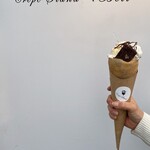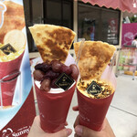 クレープは320円(税込)から。生地はプレーン、ショコラ、抹茶の3種。季節限定のクレープのほか、カラフルなクリームソーダなどのドリンクも豊富に用意されているので、何度も訪れたくなります。