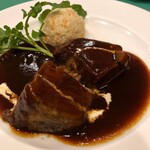 『こちらでのお目当てはやはり何と言ってもビーフシチュー。自家製のデミグラスソースでじっくりと煮込まれた、恐らくももの辺りのお肉がびっしりと入った逸品』(nionioさん)