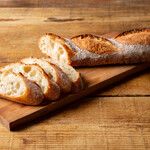 「明太ペペロンチーノバゲット」は、福岡店で堂々の人気ナンバーワン商品。にんにく、パセリ、こしょうでパンチを利かせた特製明太子バターをバゲットにたっぷり塗り込んで焼き上げています。ビールや白ワインにも合う逸品。
