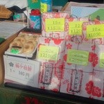 焼き立ての梅ヶ枝餅を手際良くラップに包み、包装してくれるお土産用はほとんどのお店で販売されています。