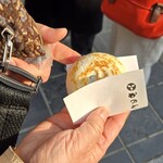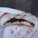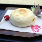 そして参道にあるお店「きくち」。梅ヶ枝餅と言えば、我が家ではきくちが馴染みの店です。そんな同店で食べることができるのが「夫婦餅(めおともち)」。なんと焼き立ての梅ヶ枝餅であんこを挟んで食べる、あんこ好きにはたまらない一品です。