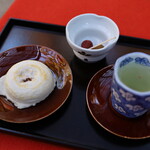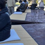 焼き立ての梅ヶ枝餅を、お茶でもしながらのんびりと食べたい! そんな時におすすめなのが、喫茶を併設しているお店です。境内にある「小山田茶店」は、創業350年を超える老舗で、抹茶やコーヒー、甘酒と梅ヶ枝餅のセットを楽しめます。