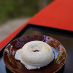 同店の梅ヶ枝餅はしっかりと焼かれていてとても香ばしい! 天気が良い時は、外の席で食べるのがおすすめ。まるで、時代劇の“お茶屋”のような雰囲気を味わえ、さらに境内の景色を眺めながら食べる梅ヶ枝餅は格別です。