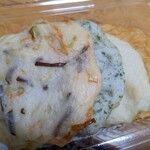 他に、すり身にスイートコーンをまぶした「もろこし天」200円や、玉ねぎの甘みを活かした「玉ねぎ天」170円、ほくほくのさつまいもが入った「おいものかき揚げ」170円、若松の岩屋で採れたあかもく(海藻)を使用した栄養たっぷりの「あかもくの天ぷら」160円など、ここでしか味わえない一品がたくさん。
