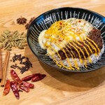 おすすめは店名を冠した「コスギチキンカレーDX」1,000円。濃厚かつ程よいスパイス感で重すぎない絶妙なバランスのコスギチキンカレーは、ほろほろに煮くずれる直前までしっかり煮込んだ鶏肉のうま味と、トマトの爽やかな酸味が合わさって凝縮したものに、温玉、焼きチーズ、チェダーチーズソースがかかっているという豪華版。