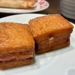 「博多皿うどん」を語る上でハズせないのが、福岡で最初の中華料理店「福新楼」です。「博多皿うどん」は、昭和初期に二代目の張兆順氏の手によって誕生。当時は中華麺の製麺所が長崎にしかなく、麺は汽車便で福岡に取り寄せていたのだとか。輸送には時間がかかり、加水率の高い太麺は日持ちしない……。そこで、届いた麺が傷まないように焼き固め、スープで煮込み、戻して使っていたことから「博多皿うどん」が生まれました。