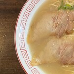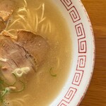 「これこれ、この味! 20代の頃、原稿書かなきゃって焦りながら夜食によく食べたよなー(しみじみ)。今も、原稿たまっているけど……。とにかく、この一杯は博多ラーメンヒストリーを語る上でも外せない傑作。食べ進めるごとに旨みがガンガン。レンゲですくう手が止まりません。麺の硬さは“普通”って頼むことが多いけれど、同店では決まって“カタ”にしますね。コクコクッと顎に伝わるカタ麺の歯応えが心地よいです」