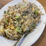 具もにぎやかだが、麺量も多い。あふれんばかりの中華鍋を熟練の技で振り、具、麺を香ばしく炒めていく。