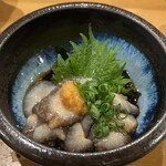 まさかお寿司屋さんで!という意外性の高いメニューですが、親方の創意工夫の精神があらわれた逸品。グラスのリースリング(ドイツやフランスで栽培されている白ワイン用のぶどう品種)とぜひ。
