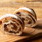 カンパーニュの上に、具材のじゃがいもとベーコン、赤玉ねぎ、ブラウンマッシュルームをのせ、ベシャメルソースとチーズをかけて、さらにトリュフオイルを塗って焼いています。このときは運良く、ちょうど焼きたてをゲット! 温かいじゃがいもがほっこりとしていて美味。