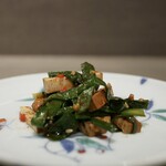 豆腐をよく食べる四川料理では、おからはソースとして使われることが多いが、飄香らしく香辛料を効かせたピリ辛のソースに仕上げている。