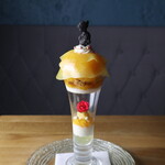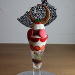 ひとつひとつ手作りで、透明の容器には北海道産の生クリーム、イチゴ、スポンジケーキ、イチゴのコンフィチュール、アーモンドフロランタンが敷き詰められており、本格的なパティスリーの味になっている。