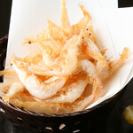 サスとはカジキマグロのことで富山では昔から愛されている魚だ。寿司では昆布〆で食べられることが多いが、こちらは大ぶりに切りつけた身に隠し包丁を入れ、豪快に炙った一品。まぐろのトロ炙りよりも脂がしつこくなくさっぱりとしているのが良い。
