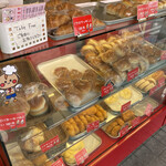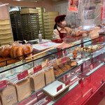 毎朝10時の開店とともに、行列のできる同店。食事パンから菓子パン、調理パン、サンドイッチ、ケーキまで、その数約35種類が店頭のショーケースにぎっしり詰まっています。購入する際は外からショーケースを覗いて、欲しいパンを店員に伝えて購入するスタイル。ひっきりなしに客が訪れるその様子は、学校の購買部さながら。