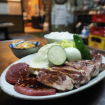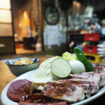 レトロな雰囲気だけではなく、肉の質も確か! 一番のおすすめは牛タンで、九州ではなかなか見られない分厚さに驚きますが、柔らかく旨みがジュワッと染み出す最高の一枚です! 盛り合わせは1人前2,200円〜。