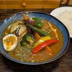 カレーのジャンルで言えばスープカレー。マスターはスープカレー誕生の地であり激戦区でもある札幌・平岸の「ルッカパイパイ」で修行されたという生粋の札幌スープカレーシェフなのですが、こちらのスープカレーはサラッとしたスープというよりも、シャバッとしたスパイスカレー的な食感であり、ドロッとした感じもあるのでいわゆるスープカレーとしてイメージするものとはかなり違うのが特徴です。