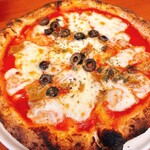 イタリア語で「アンチョビ」を意味するアッチューゲ。ナポリの定番ピッツァではあるものの、国産、それも石巻産のカタクチイワシを使った自家製アンチョビをのせている点が珍しい。好き嫌いが分かれるアンチョビ特有の臭みはなく、アンチョビの概念が変わる一枚。