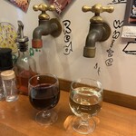 好きなタイミングで好きなぶんだけ飲める、夢のような蛇口です。赤と白2つの蛇口があり、どちらから出してもOK。ピッツァに合わせて、ワインを変えて楽しんで。