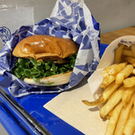 完全にお肉を覆い隠す量のチーズ! 折りたたみ式のレタスがなんとか姿を現していますが、下のバンズすら見えません。お味の方は、ブルーチーズの風味が良いアクセントになっていて、実に濃厚。