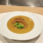 魚介から肉料理、洋食から中華までバラエティに富んだコースを満喫したら、次は締めの一品へと移ろう。この日のシメは「ガーリックライス甲南漬け添え」「自家製カレー」「あっさり汁そば」「黒ごま担々麺」「お好み焼き」「ソース焼きそば」の6品。