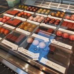 宝石のようなショコラは約18種類。「エクアドル」や「マダガスカル」などカカオの産地で味の違いを楽しんでみるのもありですが、素材と素材のかけ合わせが絶妙な「苺レモン」や「カシスオレンジ」といったフルーツ系にも注目です。