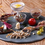 「滋賀産鹿肉ロース」(4,860円)は、高たんぱく低カロリーでヘルシーな赤身肉です。雄に比べて身質が良く、柔らかな雌鹿のみを使用しています。滋賀の山椒の実で作った醤油と鮒寿司の飯、滋賀で自生しているクレソンで作った自家製ソースが付いています。