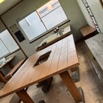 店内には大漁旗や提灯がつるされ、お祭りのような楽しさでファミリーにもおすすめ。釣り堀で釣った魚をその場で刺身にしてもらうこともできます。トング、軍手、カキナイフ、皿、割箸、ジャンパー、ウォーターサーバは利用無料。食事代が1,500円未満の場合は、炭代500円が必要となります。