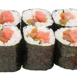 全国のうずらの20%を飼育している「高崎クエイル」は、餌からこだわり抜いた鶏卵を上回る栄養価のたまごを生産している。この卵黄を醤油漬けにしているのがこの寿司のポイント。自家製ネギトロの中巻寿司とのカップリングで、とろけるような卵黄の濃厚な味わいがさらに引き出されている。