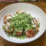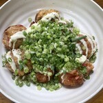 ふわっとしたと卵とジューシーな豚肉、ネギは甘みと爽やかな香りがアクセントとなって、ソース、マヨネーズと見事に調和します。おつまみとして楽しめますよ!