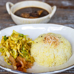 「鶏ムネ肉の弾力ある食感も好印象です。カレーはターメリックやマスタードシードを加えたスパイスライスとの相性も抜群。あと『デリー』は名シェフ・スワミさんレシピによる南インド式茄子ピクルスも名物ですが、ここの『やさいのピクルス』も絶品です。オリジナルよりオイルが控えめで、よりナスの味がしっかり。日によっては、ナス以外の野菜のピクルスも登場するようです」