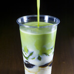 生地から伝わる抹茶感! 鮮やかな緑色をしています。ほうじ茶もとっても濃厚! お茶好きにはたまらないもみじ饅頭です。目で見て、食べて楽しんでください。