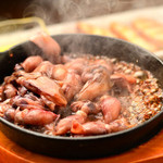熱々の鉄板にホタルイカをのせるとジワジワ味噌が出てきて、それが醤油ベースに濃厚な味付けの一部となり相当おいしい。さらにガーリックバターを入れて味変するとこれも美味で、バゲットにのせてブルスケッタ風にいただくのも良き。これはマストオーダーメニューだと思います。