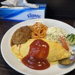 看板メニューのオムライスは中身がチキンライスのものもありますし、中身がドライカレーである「オムドライカレー」900円もあります。