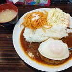 しっとりとしたドライカレーをふんわりとした卵が包みます。バターの香りも良く、卵の量もむさしやより多いのではないでしょうか。ナポリタンや味噌汁がつくのも町洋食ならではの魅力。