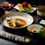 そして最初に出てくるのは、盃に入った食前酒ならぬ食前酢。フルーティーな味わいで、口の中をさっぱりとクリアな状態にしてくれます。