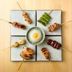 料理は「おまかせコース」8,000円の一本勝負。サラダ、おまかせ串焼き10本、季節の玉地蒸し、季節の炊き合わせ、季節の一品、食事/麺、水菓子という構成だ。もちろん、追加で串焼きや一品料理をオーダーすることもできる。