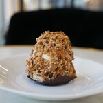 基本的には、しっかりと焼いたメレンゲに生クリームをこんもりと絞り、チョコレートを削ったものを表面にまぶしたお菓子ですね。こちらのものは小ぶりですが、もっと大ぶりなものも多いですね。