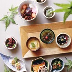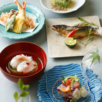日毎に替わるサラダ、スープ、炒め物にメインディッシュ、ご飯とデザートの構成でボリューム満点です。メインディッシュはまろやかな辛味の「海老のチリソース」や旨味たっぷりの「牛肉ときのこのトーチ炒め」、バランスのとれた「豆腐と五目野菜の煮込み」などバリエーション豊か。