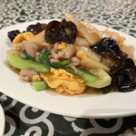 チャーハンの上には数えきれない程の小海老が乗っています!えび以外の具材は、卵、ネギ、グリーンピース。パラパラでもしっとりでも無く、もっちりとした仕上がりのチャーハン。小海老は素揚げに近いくらいカラッと炒められていました。』(コショラーさん)