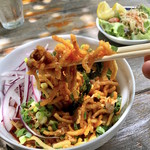 そしてこちらは、卵を2個使用した「2卵ホーム卵」。見た目もネーミングも店主さんのセンスに脱帽です! 麺はうどんかそばを選べます。まずは生ビール1杯に複数の小鉢が付く「観戦セット」をゆっくり味わって、シメにお好きなお好み焼きを注文するのも良さそうですね。