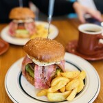 パティはUSビーフ120g。チャックアイロールとブリスケット、2カ所の部位に国産牛の脂をミックス。ステーキ的なごっついパティを目指した時期もありましたが、不評につき、現在のほどよい粗挽きに落ち着いています。グリルは鉄板で。バンズは全粒粉。チーズはチェダー。かぶりつけば、強めの粗挽きコショウに焦げたチーズの味。バーガー中央付近に甘味を感じるマヨネーズ。このマヨネーズがアツアツで、バーガー全体もアツアツです。コショウ強め&野菜なしのチーズバーガー、すなわち、ロッテリアの「絶品チーズバーガー」的バーガーということで、ビールとともに楽しみたい一品です。