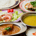 大きな皿にライスを盛り、その上にカレーや肉料理、揚げ物、野菜の惣菜、豆の煮物などをのせた、いわゆる“ぶっかけ飯”にあたる。イスラム教徒の料理のため、牛肉、鶏肉、羊肉、シーフードは使用するが、豚肉は使わないのも特徴だ。