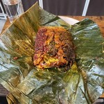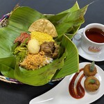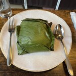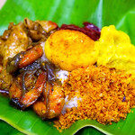 『ランプライスは、スリランカ版お弁当。バナナのの葉の中にインディカ米を盛り、