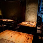 やきとん大地へ通っていた人なら「お!」と思う、当時と同じような配置のカウンターとテーブル席。厨房も焼き場も、すべての作業を間近で見られるオープンカウンターが清々しいです。その中でも特等席は、なんと言っても入って右手の焼き場前でしょう。
